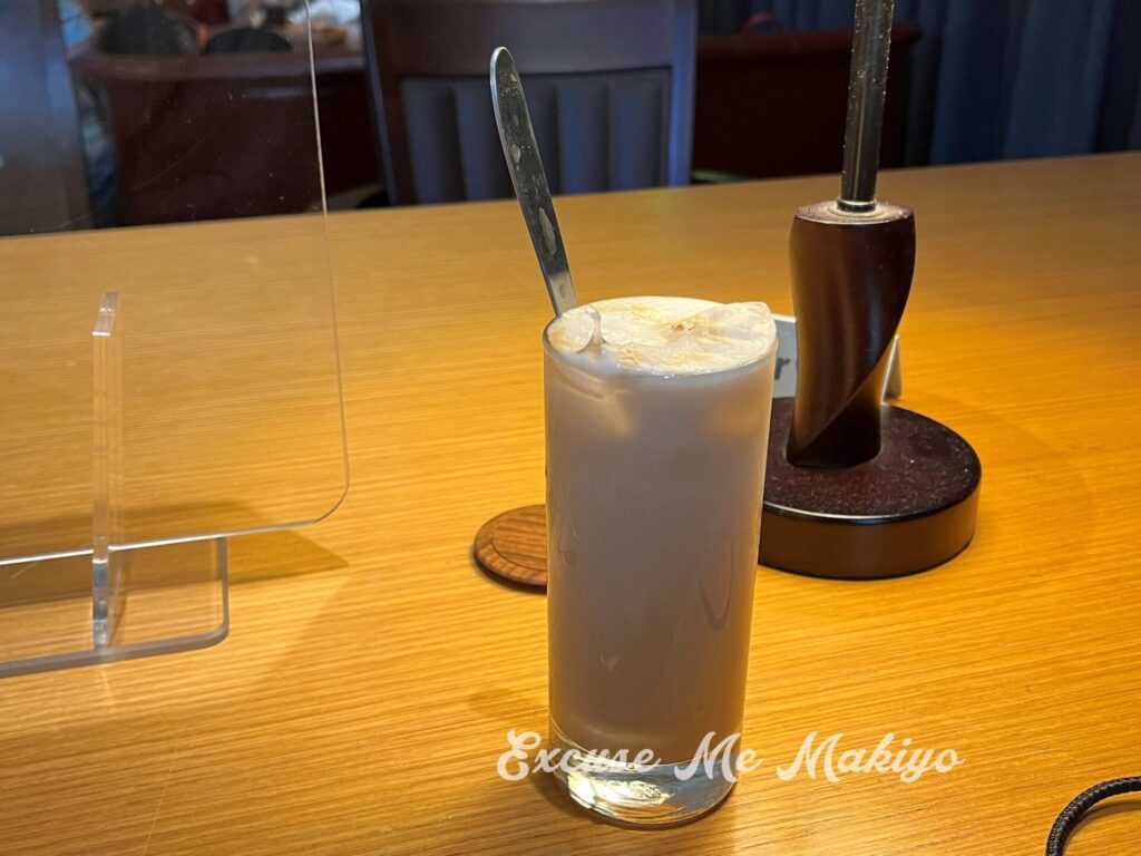 コーヒーがグラグラ不安定なガラスコップでした!おしゃれ~でも本来はここはコーヒーではなく、ティーを飲むべきだったと後で気づきました(笑)