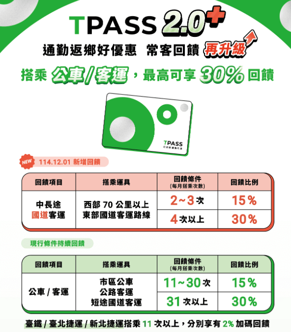 TPASS 2.0+回饋金怎麼領?12/1起再加碼!TPASS 2.0+常客優惠Q&A一次看